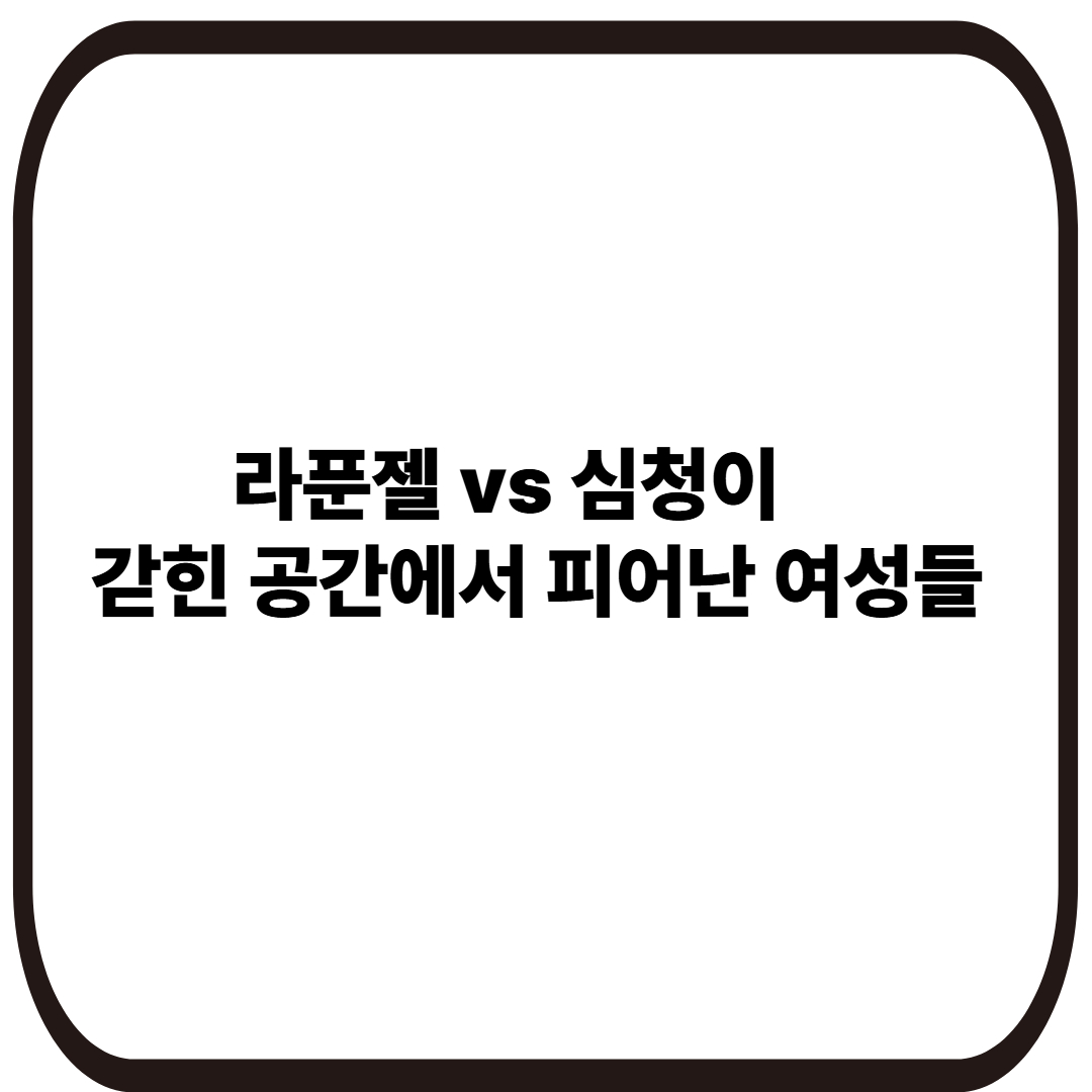 라푼젤은 갇힌 공간에서 탈출하고 싶어 했고, 심청이는 스스로 뛰어든다. 하나는 억압에서의 탈출이고, 하나는 자발적 희생이다. 오늘날 여성들은 이 두 갈래 길 사이에서 균형을 찾고 있다. 자유를 향한 열망과, 사랑과 책임을 향한 헌신. 중요한 건 누구를 위해서가 아니라 ‘왜 그 선택을 했는가’이다.